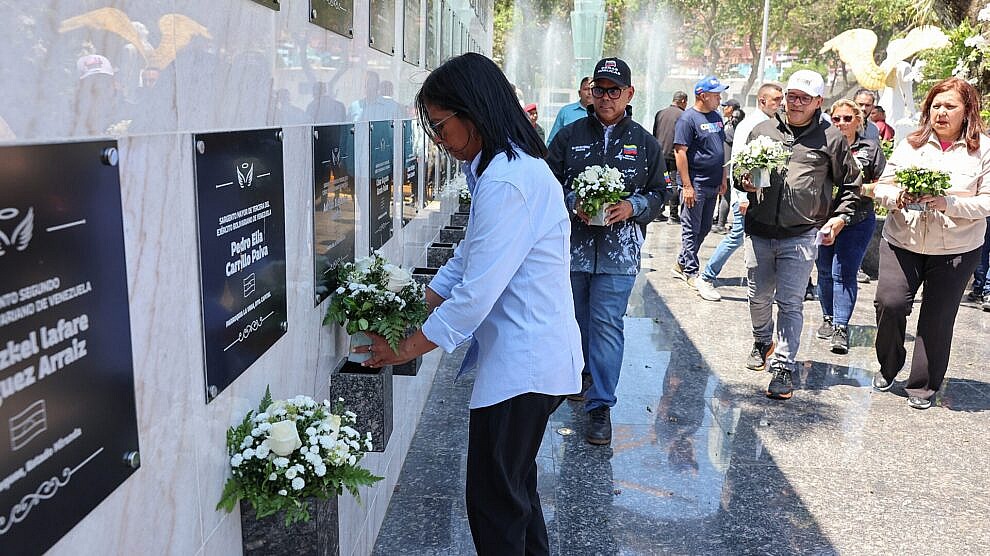 Este lunes, la Presidenta Encargada de la República Bolivariana de Venezuela, Delcy Rodríguez, rindió tributo al monumento de los héroes y heroínas del pasado 3 de enero, en el Cementerio General del Sur.