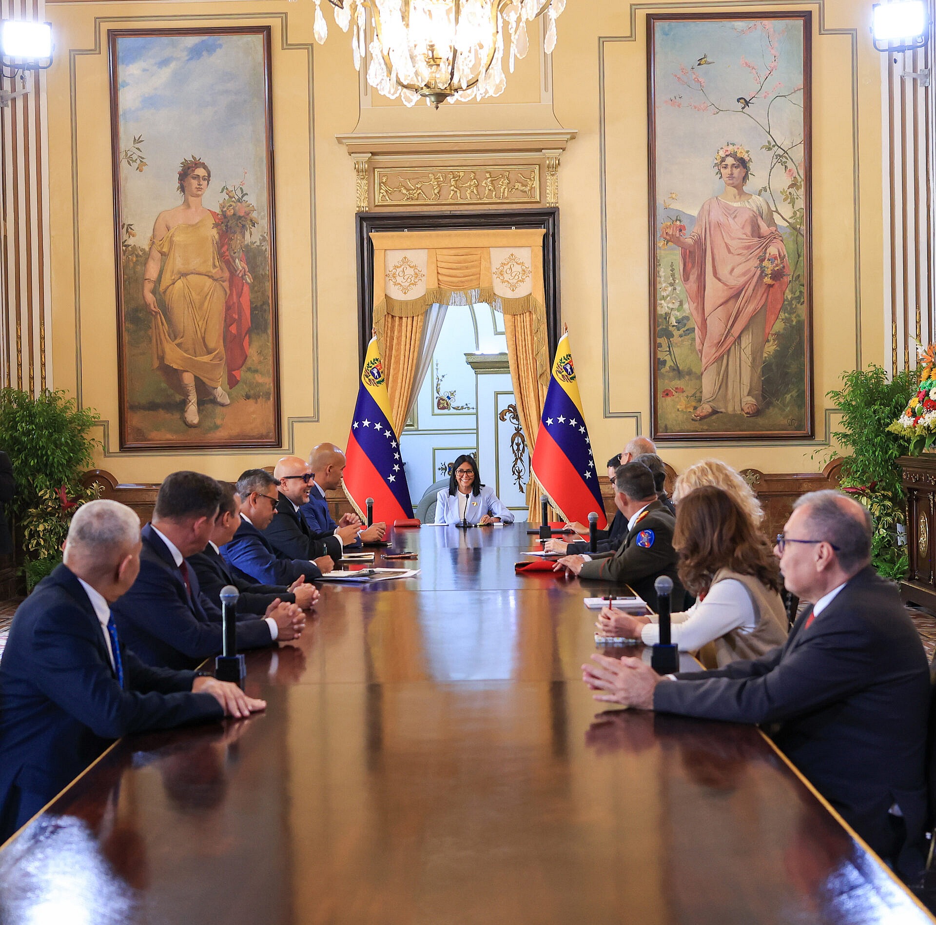 La Presidenta Encargada de la República Bolivariana de Venezuela, Delcy Rodríguez, lideró este jueves la ceremonia oficial de juramentación de los nuevos integrantes del Gabinete Ejecutivo desde el Palacio de Miraflores.